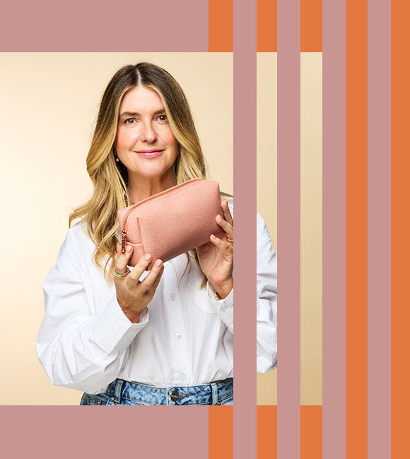 A luxe, limited-edition makeup bag in REESON’s mink shade with signature orange lining and rose-gold hardware. Compact for your handbag, yet roomy enough for all your beauty essentials.